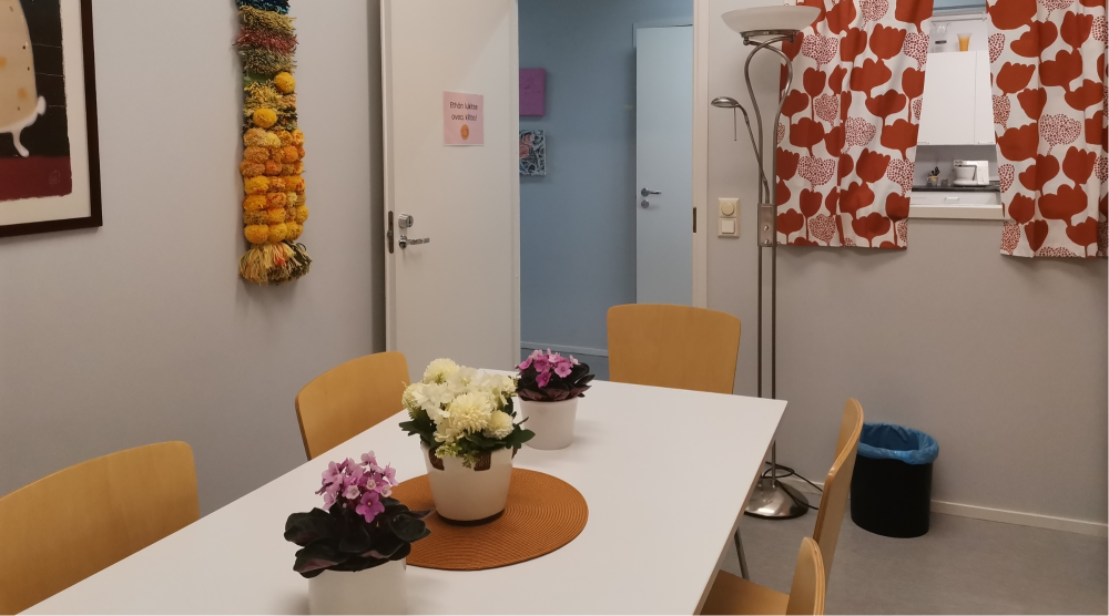 Soppi sopii pieniin max. 8 hengen kokouksiin, työpajoihin ja palavereihin. Tilan varustuksiin ei kuulu videotykkiä tai kannettavaa tietokonetta.