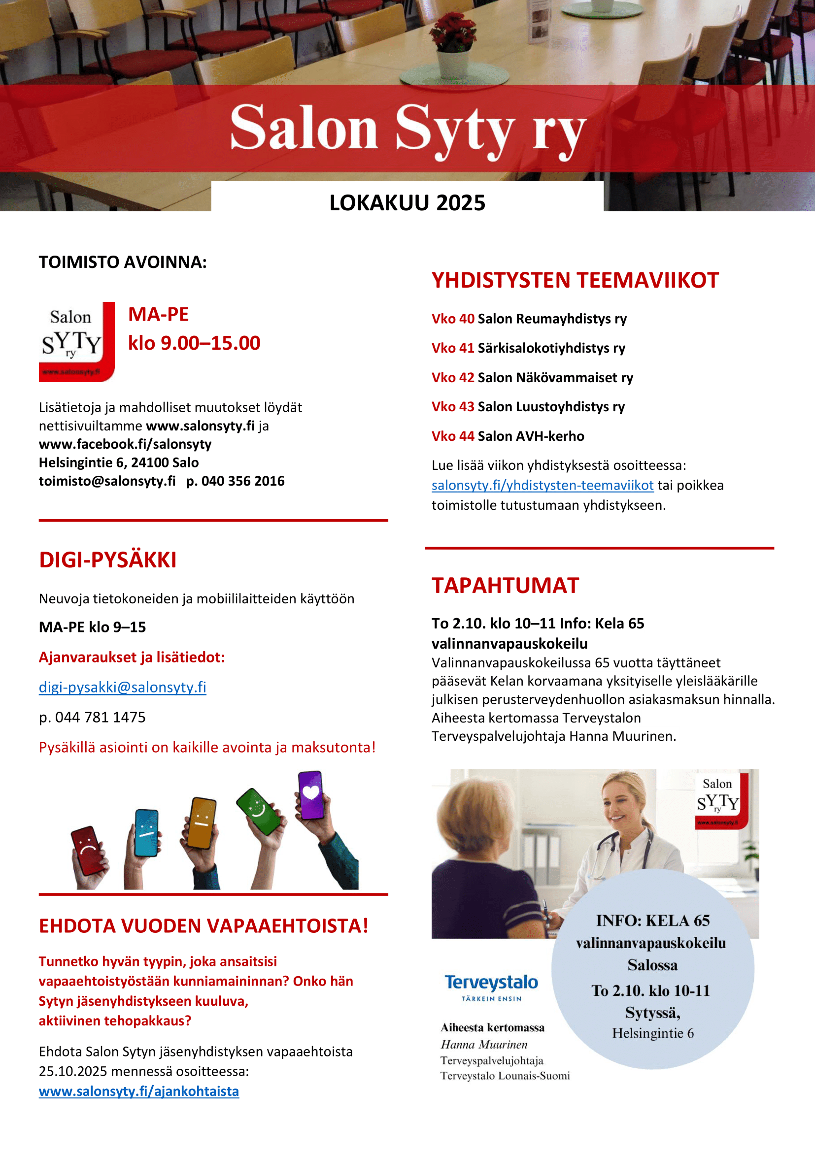 Salon SYTY ry kuukausitiedote LOKAKUU 2019