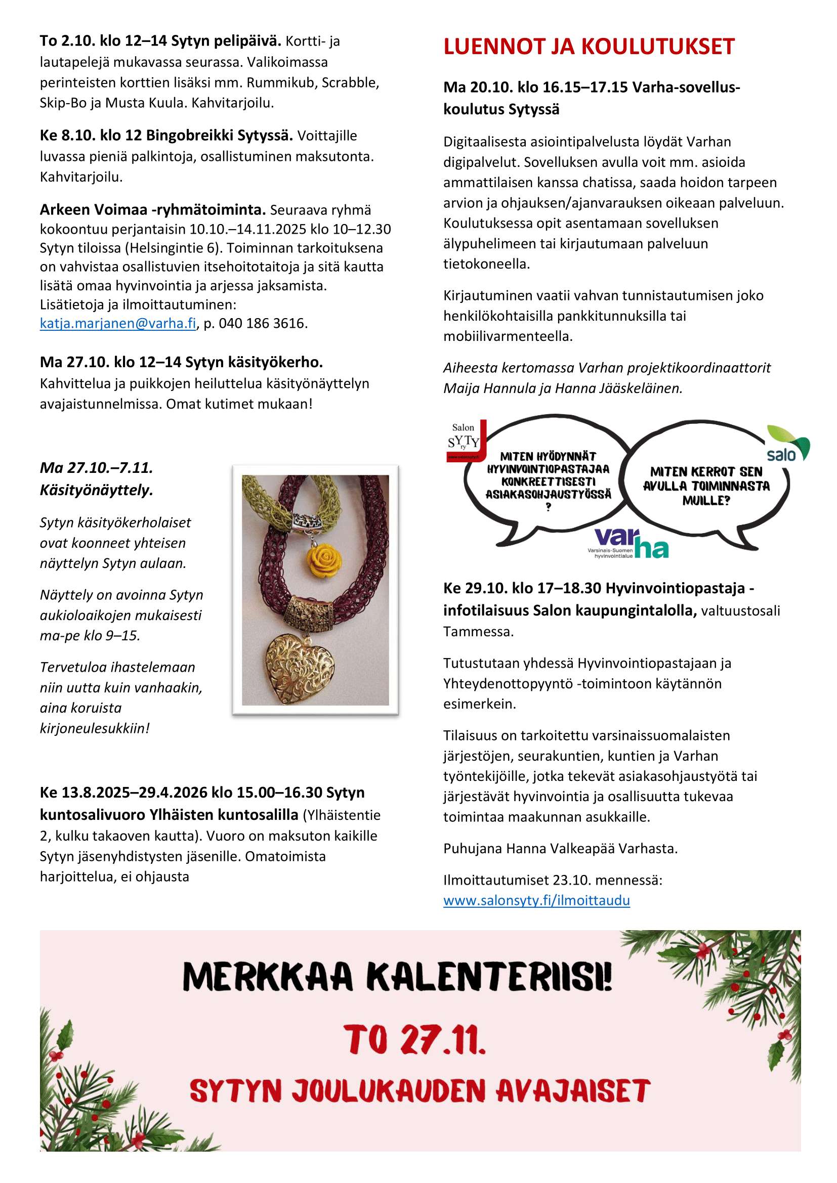 Salon SYTY ry kuukausitiedote MARRASKUU 2019