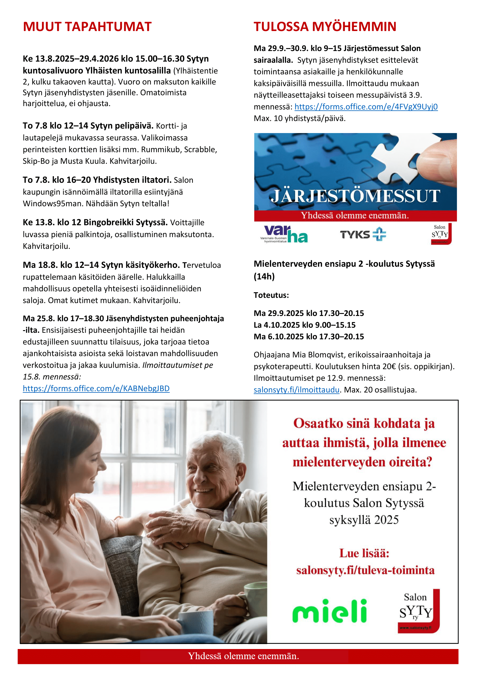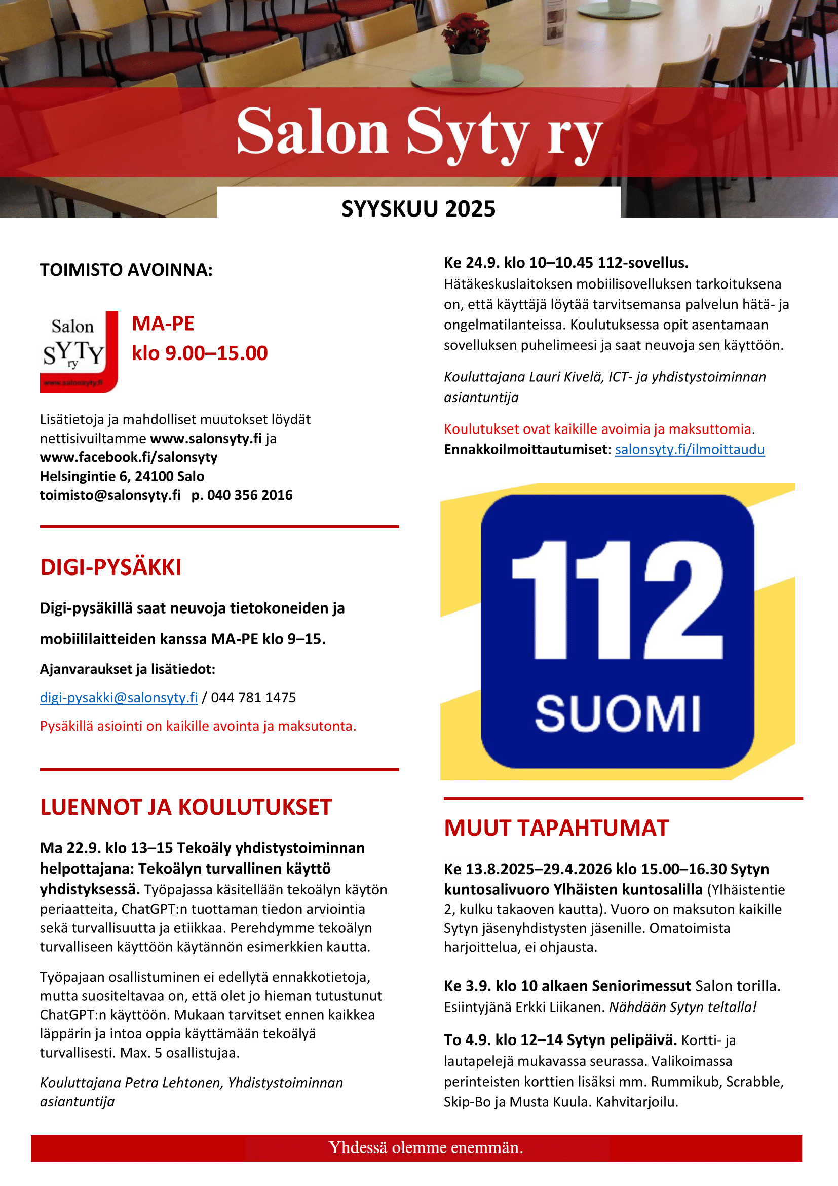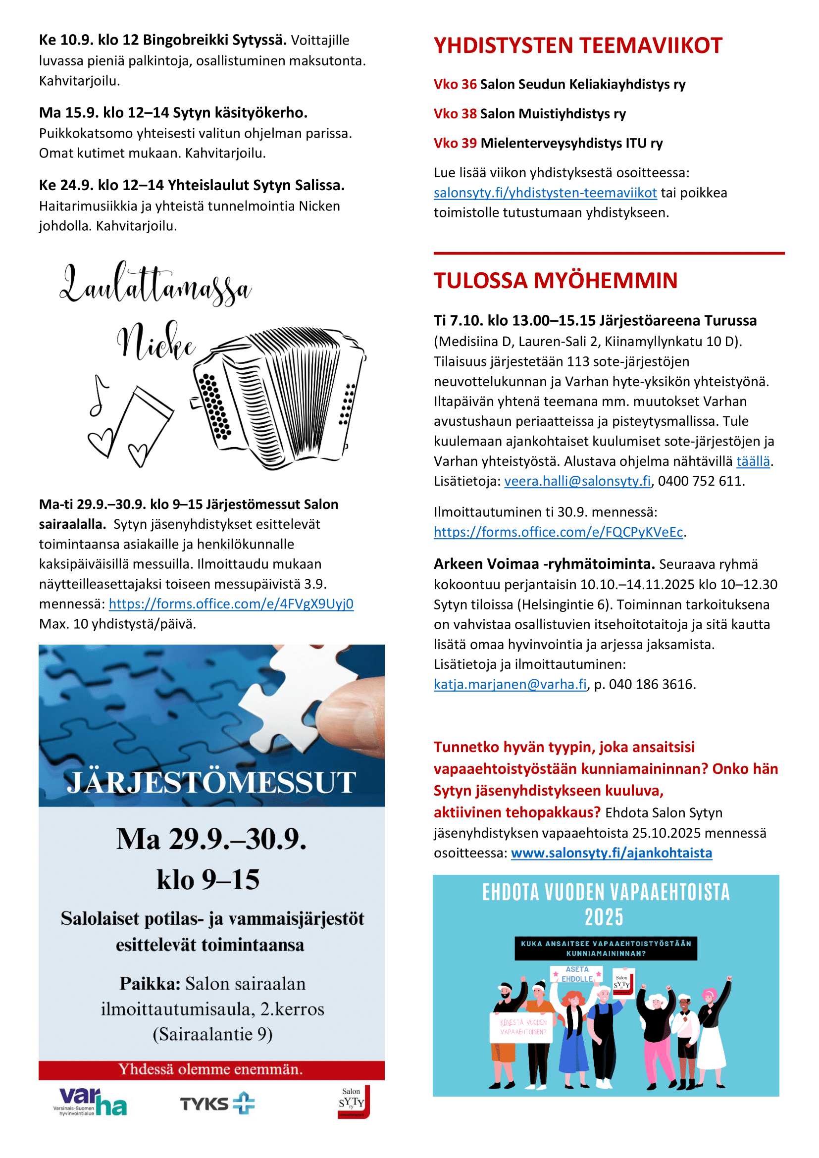 Salon SYTY ry kuukausitiedote SYYSKUU 2019