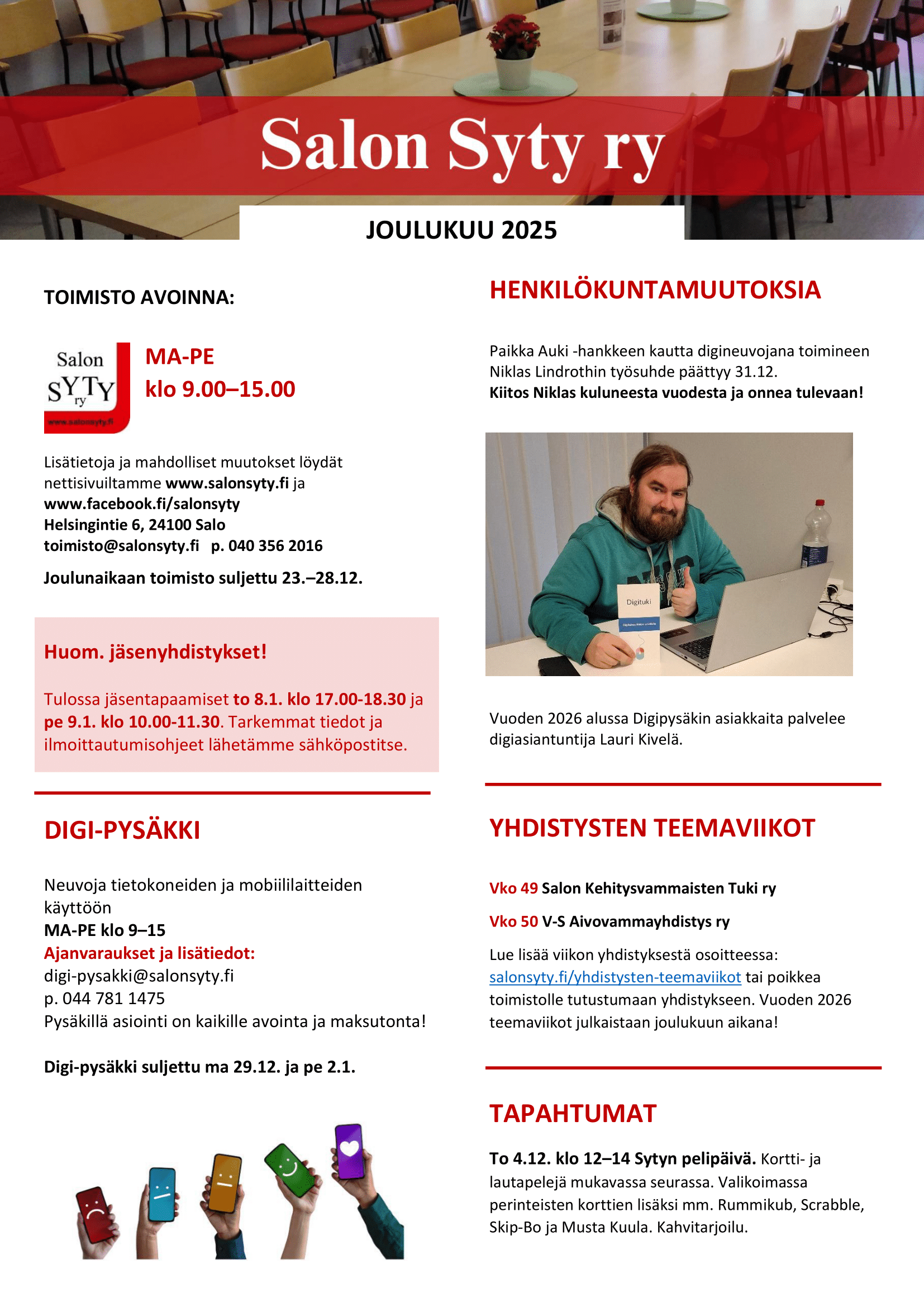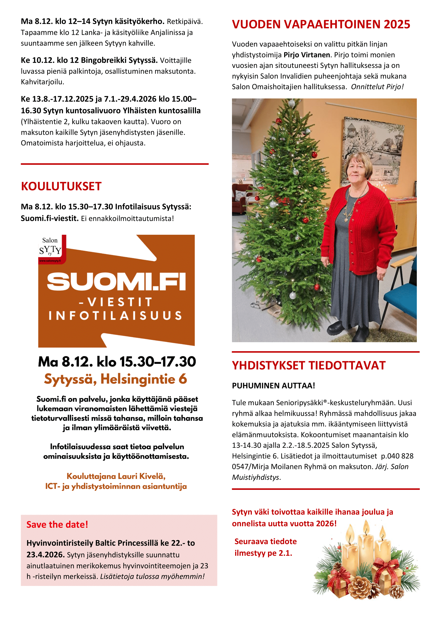 Salon SYTY ry kuukausitiedote JOULUKUU 2019