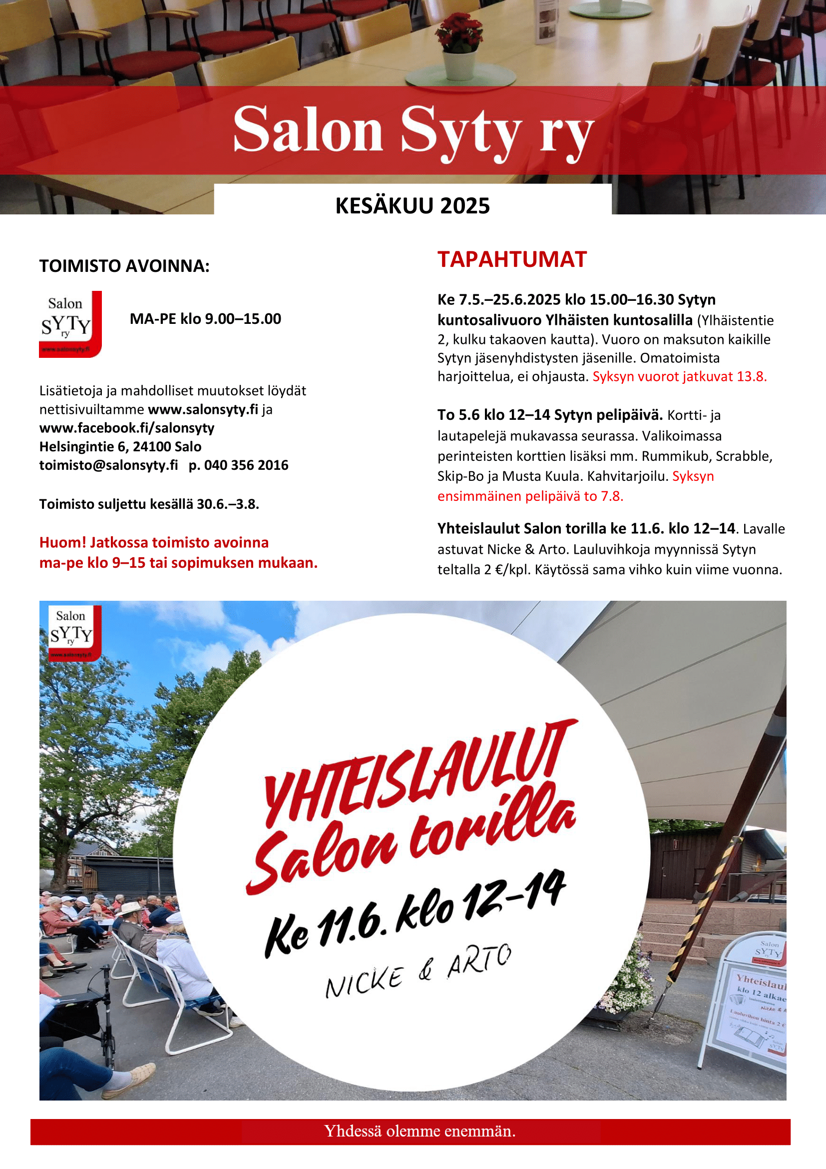 Salon SYTY ry kuukausitiedote KESÄKUU 2019