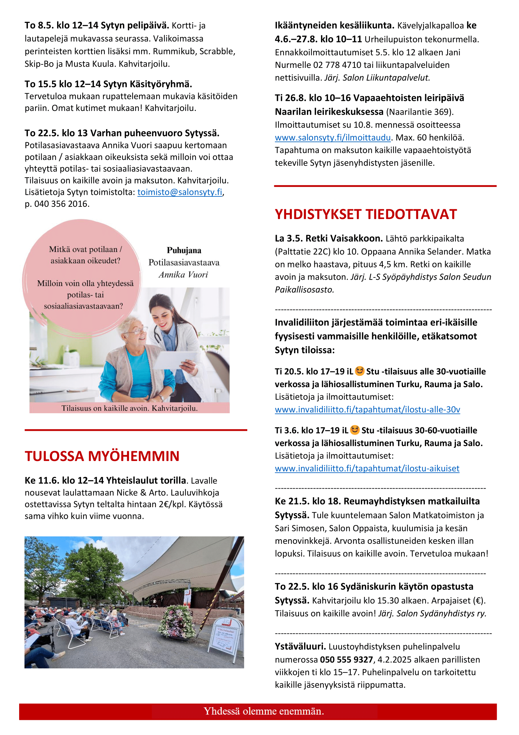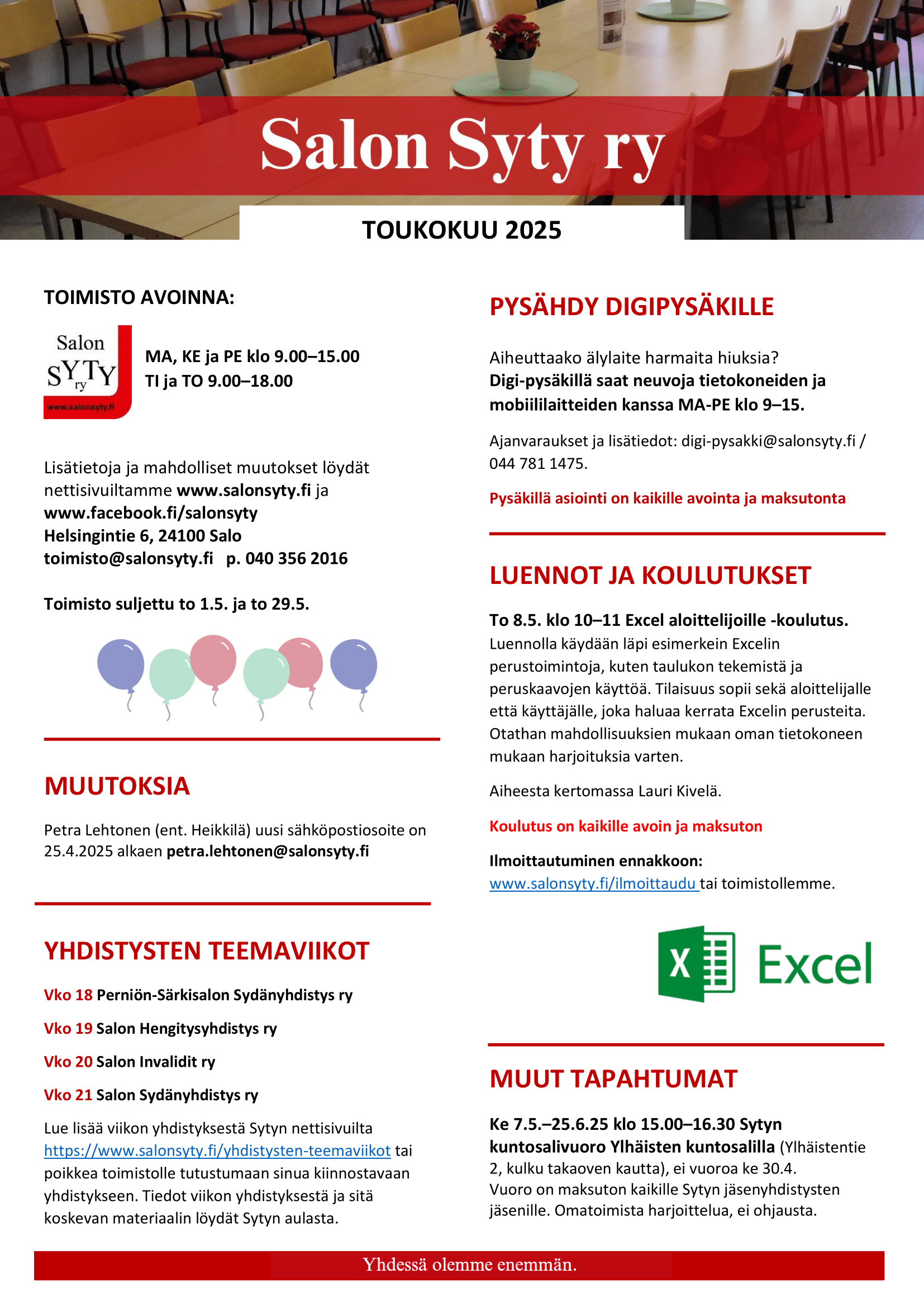 Salon SYTY ry kuukausitiedote TOUKOKUU 2019